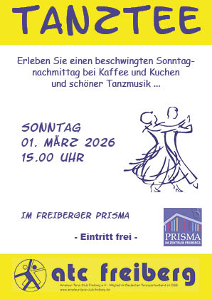 | 01. März 2026 | Öffentlicher Tanztee im PRISMA/Freiberg |